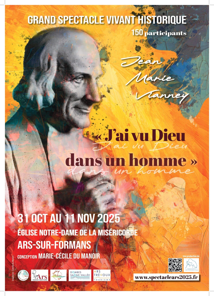 INFORMATIONS ET INSCRIPTION : https://www.arsnet.org/evenements/grand-spectacle-vivant-du-31-octobre-au-11-novembre-2025-jean-marie-vianney-jai-vu-dieu-dans-un-homme/
