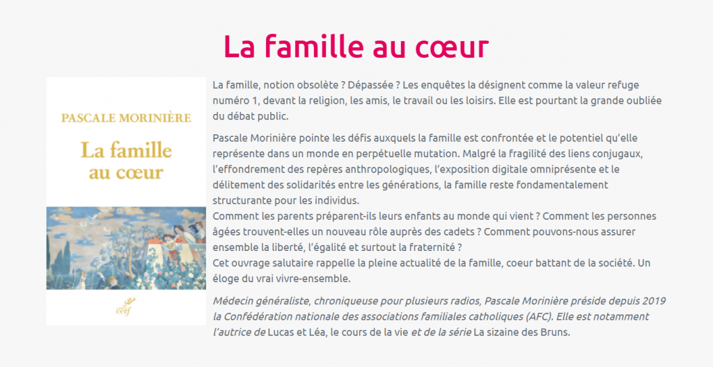 RCF : Vous publiez un livre intitulé « La famille au cœur » aux éditions du Cerf. Pouvez-vous nous dire de quoi il s’agit ?