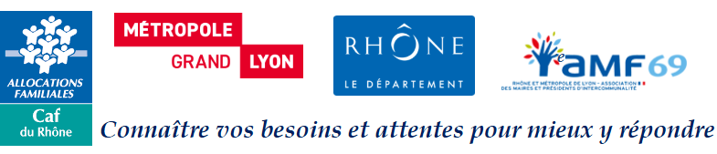 Vos réponses à ce questionnaire, permettront à la Caf du Rhône, la Métropole de Lyon, le Département du Rhône, l’Association des Maires du Rhône et de la Métropole de Lyon, l’Udaf 69, la MSA Ain-Rhône et leurs partenaires de définir leurs priorités d’actions pour les cinq années à venir, en fonction de vos besoins en matière de petite-enfance, de parentalité, de jeunesse et d’animation de la vie sociale.