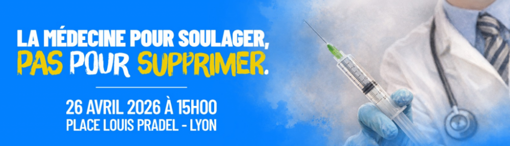 | Depuis plus de 50 ans, la Marche pour la Vie s’engage avec détermination dans la défense du droit à la Vie. Cette année encore, une marche pour la vie aura lieu à Lyon, le dimanche 26 avril à 15h, place Louis Pradel. Notre présence est essentielle. Mais pour continuer ce combat, nous avons besoin de vous. Organiser un événement de cette ampleur demande des ressources humaines, matérielles et financières importantes. Aujourd’hui, il nous manque encore 4500€ pour boucler le budget. Chaque don, même modeste, nous aide à :• Assurer la logistique (sonorisation, sécurité, signalétique).• Communiquer largement pour mobiliser un maximum de participants.• Soutenir les associations engagées pour la Vie. Mobilisons-nous pour une fin de vie digne – Marche pour la vie |
